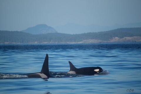 As we arrived at Waldron Island, we saw our first blow! The crystal-clear surface water broke as the first hump emerged. We found two humpback whales! In fact, it was...
