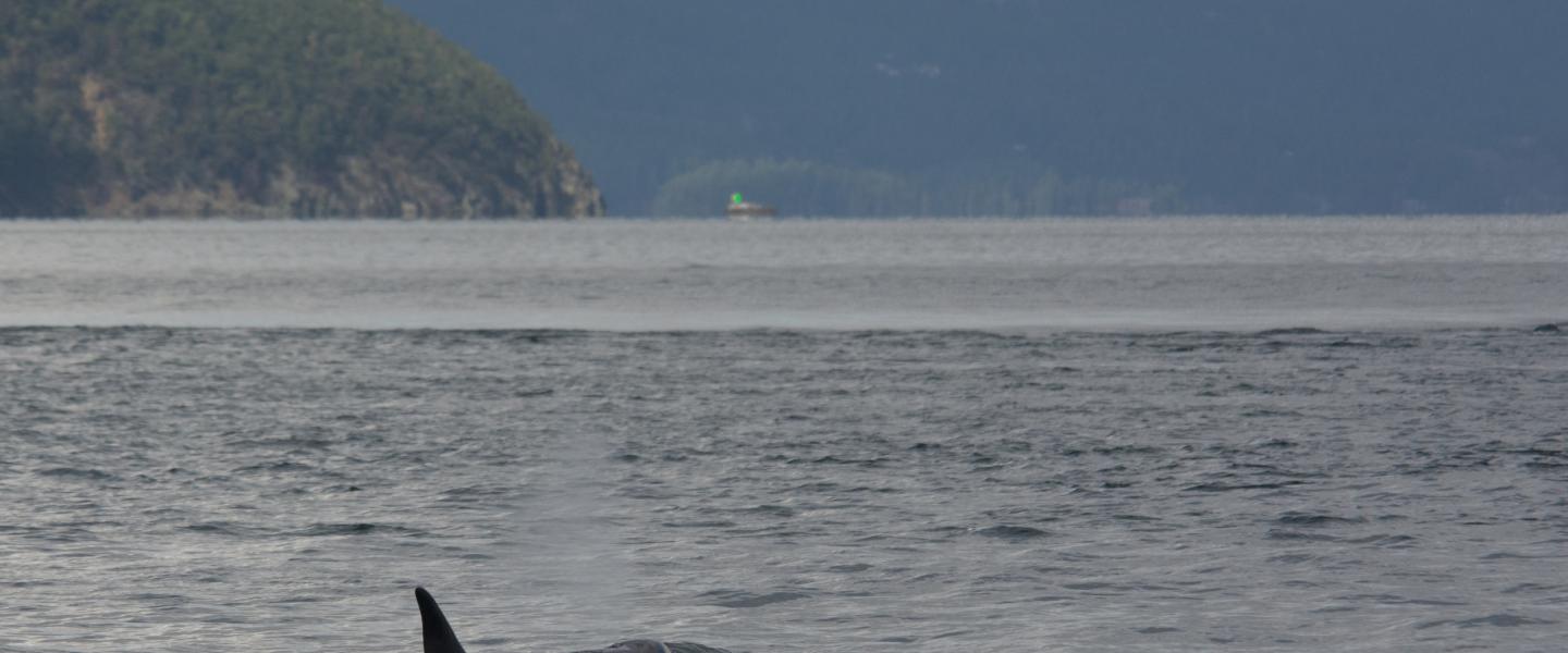Then we headed around Henry Island and found our Southern Resident whales! These beautiful animals swam all along the shoreline and out into the open water. But, even though they were really spread out throughout a large expanse of sea, they were still able to communicate with their vocalizations that could reach up to 10 miles! J pod breached randomly from all different directions! It’s always very exciting to see these wild animals in their natural habitat.