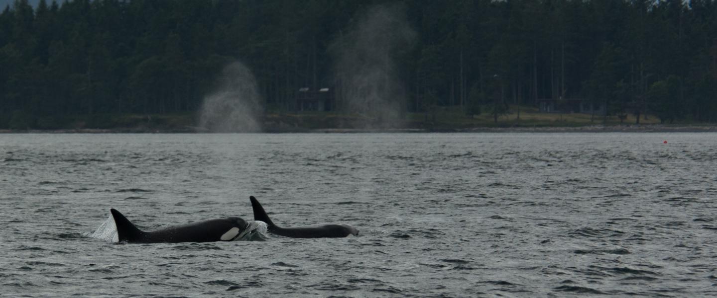 Today’s trip started out with sunny skies and excited guests as we left Friday Harbor for our 1:30 trip on our Sea Lion vessel. Captain Pete, Naturalist Rachel and I heard reports of some whales far up in Canada. Luckily, they were headed south towards us, so we headed north to meet them! We boated up through the San Juan Channel and through Boundary Pass alongside the west side of Waldron island as we entered Canadian waters and passed by the east side of Saturna Island. Here we found our whales!