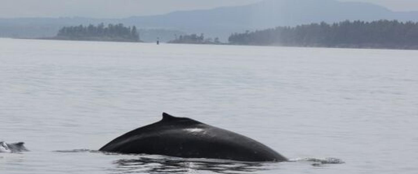 Suddenly, Captain Pete caught word of some whale activity back towards Lopez Island so we turned around and headed towards land. Then, we saw a blow!