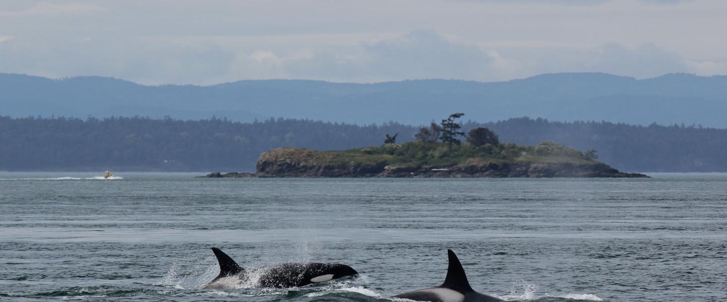 Today’s afternoon Classic tour aboard the M/V Sea Lion was crewed by Captain Pete, Jordan, and me! We had an awesome group of folks today with lots of families who asked some really great questions! We left the docks in Friday Harbor and headed north in San Juan Channel towards the top of San Juan Island, where we crossed to the west side of the island where a group of Bigg’s killer whales we reported to be hanging out!