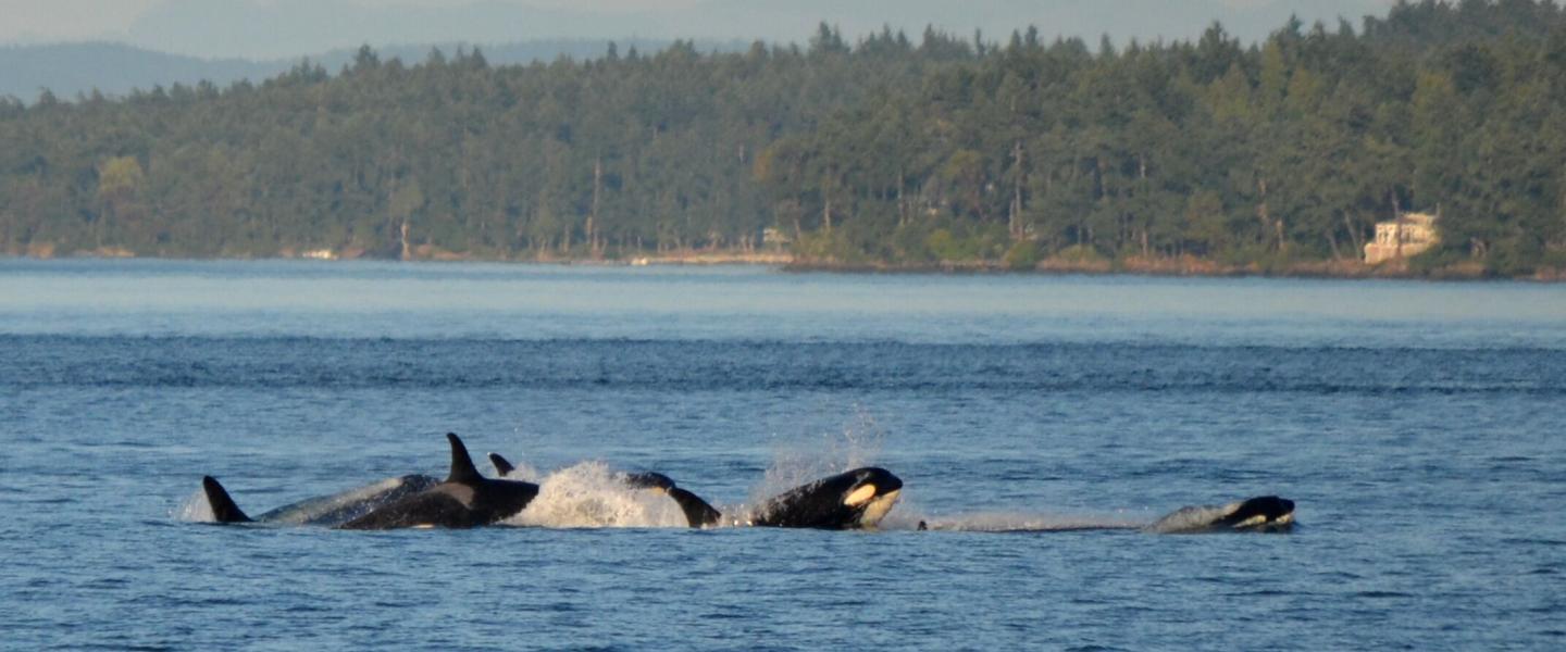 So M/V Sea Lion steamed ahead, arriving at our destination within twenty minutes from departure! The T34s, T36Bs, and T37s were near Waldron Island, spending more time above the surface than below! Dall's porpoises were also on scene and were quickly making their way out of there and towards President's Channel. Before noticing the orcas, the captain of another vessel radioed in how peculiar it was there were so many Steller sea lions much farther up the rocks than normal. The boat was watching these sea lions in their high-elevation status when several orcas appeared out of no where! Obviously these sea lions knew who were coming directly into the area from below! Our passengers watched in amazement as these mammal eaters were in full-on hunt mode. Two Steller sea lions had unfortunate fates today, and were repetitively tossed around and sloshed through the seas in a drowning tactic conducted by these top-notch predators. There were about 8-10 Bigg's killer whales in the area, the youngest having only 2 years of life under his/her belt. It was so cool to see so many families join in together for the hunt! Passengers watched extreme acrobatic orca activity, including tail slaps, lob tails, pec slaps, and varying breaching activity! I could not say enough how lucky we were to see these whales at just the right time to catch all the action! Everyone got awesome footage and we were all able to spend quality time with this amazing group of Bigg's killer whales! Certainly a phenomenal whale watch to add to the memory bank!