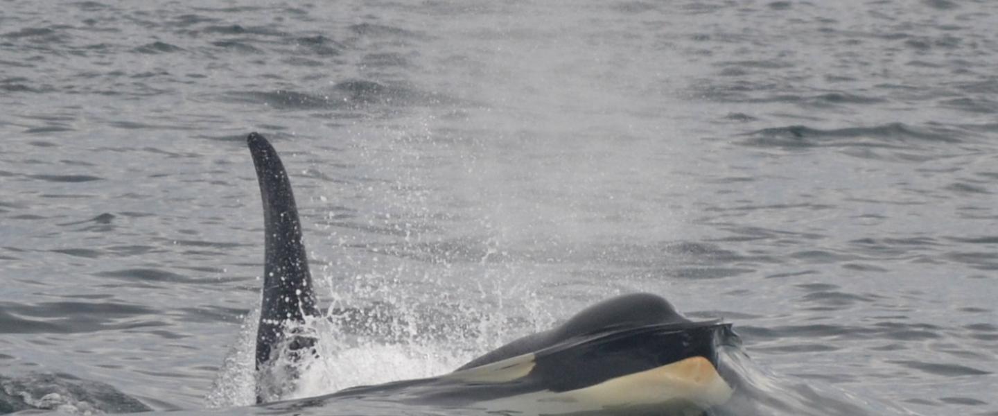Waking up to a windy forest and a text about how windy it would be out on the channel today, I had no high expectations for whale watching. I arrived at the dock and knew we probably weren’t going to make it to the West side of the island The Resident Killer whales were spotted there last but due to the unsheltered waters it would be too rough for us to get there. Instead, I spoke with Captain Gabe and he had other orcas in mind, a Transient pod was just a short drive out of the harbor. This group has been hanging out around the islands for a couple of weeks now and I am always excited to see them and observe their young calf. Captain Gabe, naturalist Eric and I along with our almost full boat headed out of the harbor up San Juan Channel. As we approached the entrance of President’s Channel and the south end of Waldron, we encountered a couple of sailboats and whale watching boats entertained by transient orcas. We followed them up the West side of Waldron watching the teenage bull fall behind and then join the rest of the pod over and over. The young calf with this group surfaced a couple of hundred yards away from our vessel a few times and everyone’s heart melted, or at least mine does every time! After about half an hour of being with these orcas, we decided to leave them and head towards Boundary Pass to find other animals. Little did we know, we didn’t have to go very far; about 300 yards off our vow was another pod of orcas headed our way! This seemed to be a larger pod and they were being very social- tail slapping, spy hopping, and breaching. Just from this, I thought to myself, “Residents”. I didn’t want to be wrong and get the guests hopes up, so I didn’t say anything. As they approached our boat, Eric and I got a better look at their saddle patches and identified them as Residents. This was the first time I had seen Resident and Transient orcas in such near proximity! They don’t tend to share their waters often and is a rare sight to see them both from one point. How cool! These guys were part of L and it was my first time seeing them this summer. We stayed with them for as long as we could before going down John’s pass to check out some harbor seals and head home. A trip I will never forget. What an amazing start to my Summer Solstice!