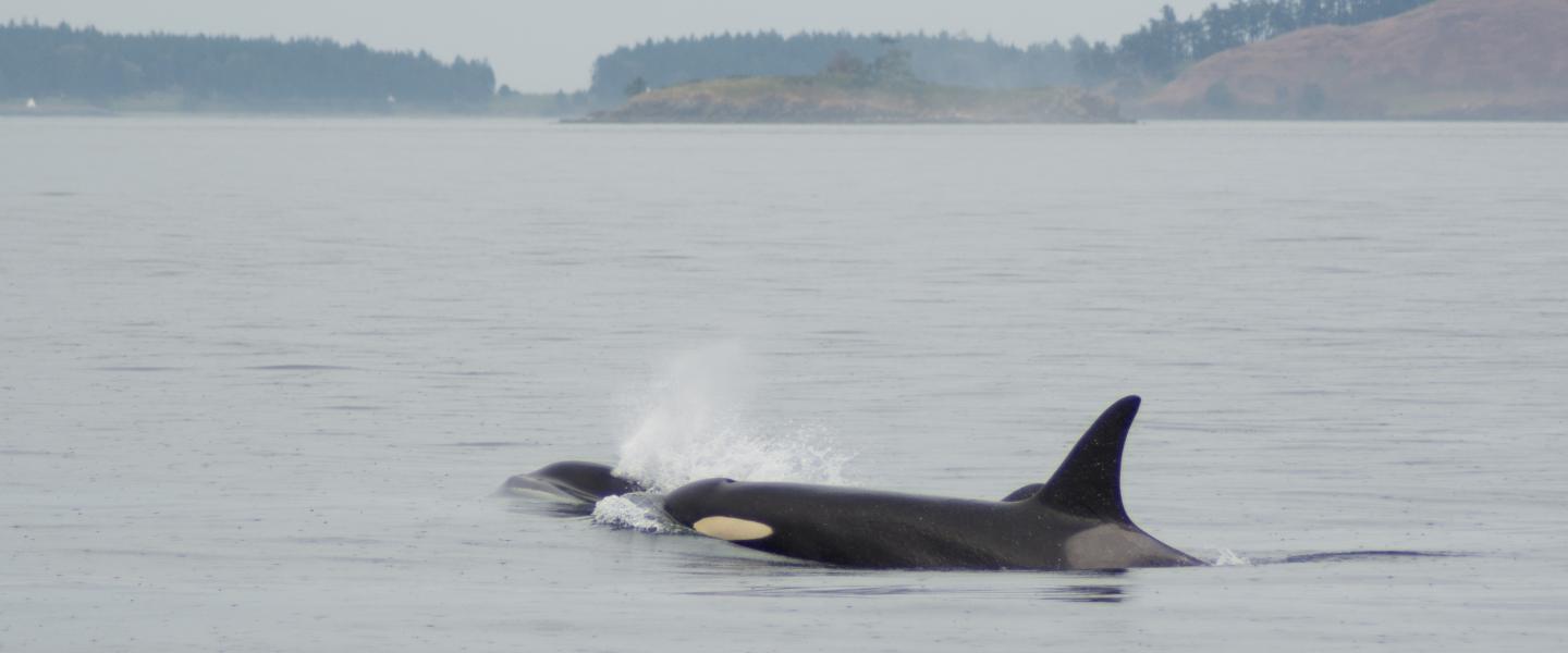 Then, we headed up towards False Bay and found the Southern Resident whales! The J pod was spread far apart along this western coast of San Juan. But, even though they were separated by distance, the whales still kept in communication with each other. At one point during our tour, a huge female slapped the water three times and headed closer into shore. Immediately the three groups closest to her stopped what they were doing and headed in the same direction! She was definitely the leader amongst these whales.