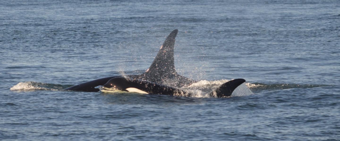 Today we got to see a group of transient orca whales just north of San Juan Island. On our way out of Friday Harbor we got a look at a swimming juvenile Steller’s sea lion. We then continued to head out of the Harbor and went into Presidents channel where we came across the T137’s. When we first got on scene the whales were all spread out and foraging for any tasty mammal snacks. We watched as the whales were spread out but surfaced in unison. We then got to see them alternate direction as well as proximity to one another. It was fun to see the whale’s ability to maneuver through the waterway. We then got to see the whales make a kill and go into a prey sharing mode. All-in-all it was a great day to be out on the water!