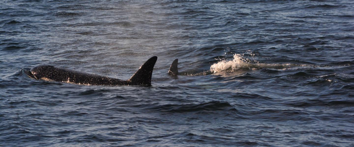 For these reasons and more, I was so excited to be able to spend time with L-pod today. It was great to see their familliar foraging behavior, and internally I was cheering them on in their quest to find salmon. We spent time with Marina and her offspring, and even saw the big adult male Crewser. He's fun to watch - there's a very distinct curvature at the tip of his dorsal fin that definitely stands out!