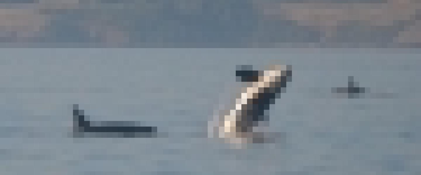 Gabe and I were ready to take off on a sunny and warm Sunday afternoon. We had a half full boat and the guests were enjoying the warm breeze and bright view of the islands as we headed up the San Juan Channel. We had been with a group of transient orcas, who have been hanging around the islands for the past month or so, all day and now we were headed out to catch up to them again. They had traveled all the way from South end of Lopez and up past Waldron Island in just a few hours we had in between shifts. We were excited to see these guys again and observe their behavior. This group has a very young calf and the guests are always excited to see him or her, since it is too early to know what gender the orca is. As we headed up President's Channel we got a report that they were moving fast hugging the shore of Waldron. We got on scene with just one more boat on site and the setting was so peaceful. We were eager to see some spouts and dorsal. As we patiently waited for them to come up for air, we were observing the interesting geology of Waldron Island and Mt. Baker in the distance. Suddenly we spotted the teenage male dorsal, with a very distinct notch, come up for air not too far from the boat. As we waited to spot the rest of the group, we just kept seeing the male surface over and over. Gabe and I started looking around to see if maybe the rest of the group was ahead as they were showing this same behavior earlier that day. Far in the distance about 300 yards from the male, the rest of the group of 5 individuals surfaced. This group was staying close together but taking deep dives. As we stayed with them for about half an hour, they stayed spread out from the teenage male as he always followed behind. We were peacefully watching their travel and forage pattern as the other boat radioed us to tell us there was many harbor porpoise hanging out off to their side, one of transient orcas' main food source! We were hoping that maybe they would toss one of them in the air and show off their hunting skills! Although we never saw a harbor porpoise in the air, we did get to see the male unexpectedly surface right next to our boat and surprise everybody. The family seemed to go right under our boat and make their way East showing us spouts and dorsal with a stunning background of Mt. Baker!