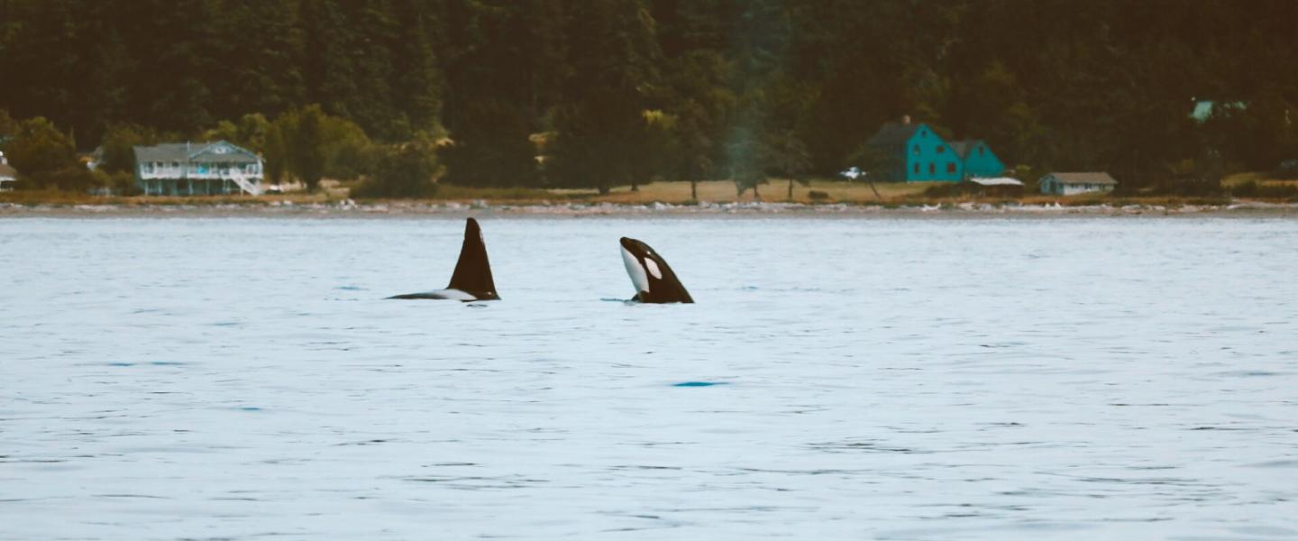 We headed back north through New Channel and spied some Mouflon sheep on the north coast of Spieden Island! They were down along the water line capturing fresh water as it falls into the Salish Sea. We kept going into John’s Pass and into Boundary Pass, scanning the waters all the way from Turn Point over to Java Rocks where we slowed down to view some harbor seals and bald eagles on the rocks but as we slowed we spied two humpback whales surfacing in front of us!
