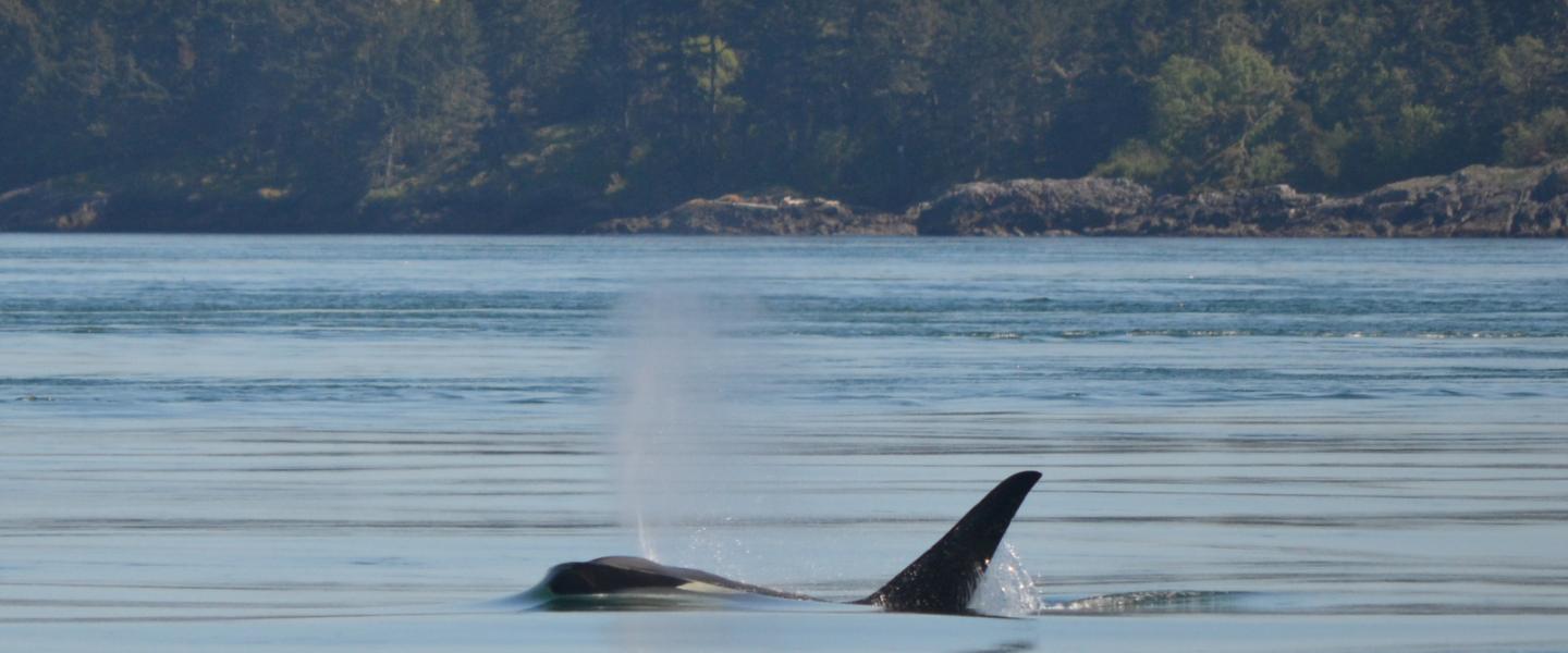 We soon could see the dark dorsal fins popping up above the water’s surface. These were orcas (aka Killer Whales) and part of the marine mammal eating community that we see off the Washington and British Columbia coasts. This ecotype of orcas are called Transients or Bigg’s Orcas. There are a bunch of Transient Orca families that we often see in the inland sea every year. This population is also growing around 3% annually which is pretty amazing! This family is called the T123’s and they have a new baby! Besides the the new baby there is the mom, T123, her older son, T123A, and the 6-year-old T123C! This family was zig-zagging through the Strait. It was so cool to see them traveling through the Salish Sea. T123A the male who is almost fully grown zig-zagged closer we could see his huge dorsal fin rise above the water. Male orcas are a little bit bigger than females and grow larger fins too. It is an example of sexual dimorphism that is rare in cetaceans.