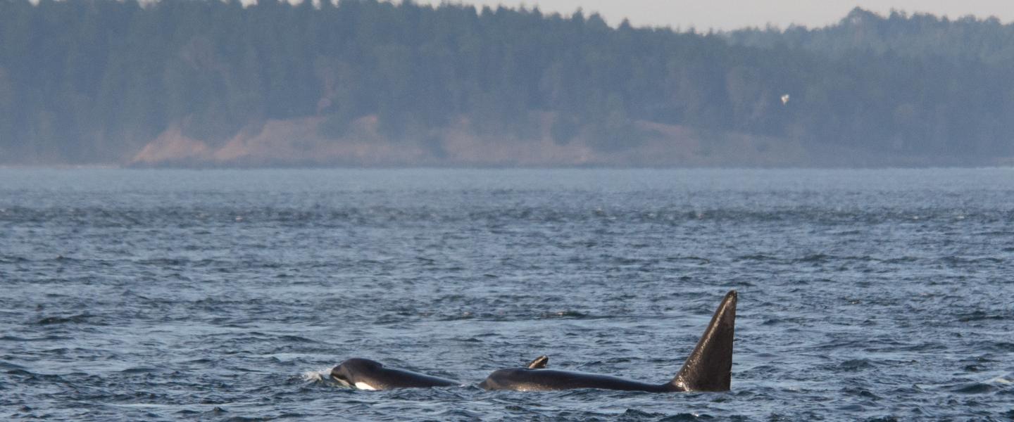 When we left the dock today there were no reports for orcas in the Salish Sea, so our plan was to head north toward Boundary Pass to see what we could find, but just as we rounded Point Caution to the north of our little town, the radio sounded off with great news! A group of Bigg’s killer whales had been sighted south of Lopez Island! Captain Gabe, naturalists Rachel, Mariana, and myself turned the boat around and headed south through San Juan Channel! We made it to Whale Rocks in Cattle Pass where we slowed and observed a large haul-out of Steller’s sea lions, kings of the rock, which were towering over a few harbor seals lying close to the water line.