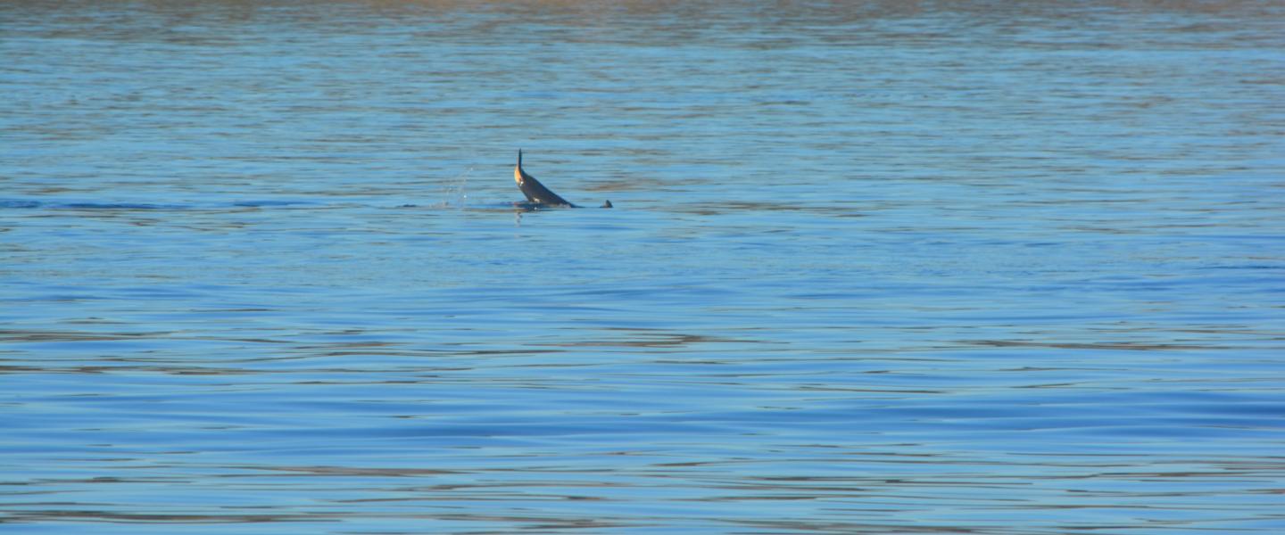 We know that orcas have excellent hearing capabilities. They're using echolocation and sounds to "see" and understand their entire marine environment. So, we know that tail-slapping (and pec-slapping, or tail-lobbing, or any sort of body part slapping the surface of the water) makes a large sound that travels much faster through the water than it does in air. So tail-slapping might very well be a form of nonvocal communication for these whales. But, considering that on this particular evening we were witnessing some very young animals, they may have been just feeling particularly jovial and playful! And that's definitely a viable explanation as well, since killer whales are extremely social, cooperative animals, and sometimes they just want to play and celebrate the joy of being a marine mammal with a belly full of good salmon.