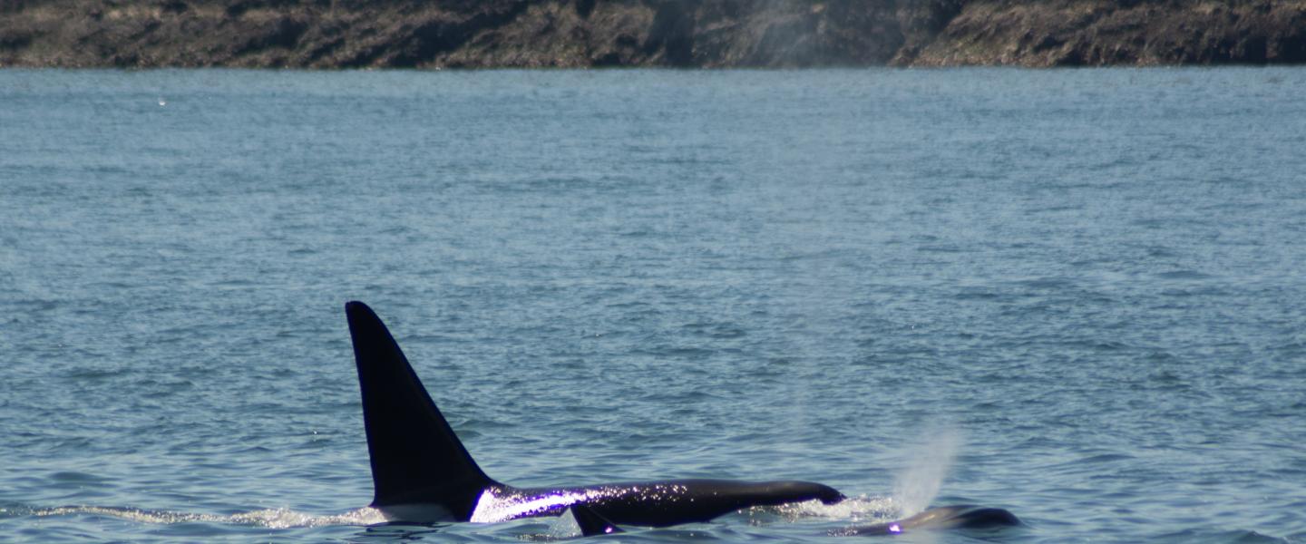 We slowed upon the scene, and we soon noticed there were orcas everywhere! Still the transient orcas, there were at least 4 or 5 family groups, possibly more. It was a superpod of transients! While different ecotypes of whales (for example, the Southern resident orcas versus the transient orcas, both of which are seen here in the Salish Sea) do not intermingle, individual pods of the same ecotype can commonly come together and hang out with each other for some time. This often is accompanied with mating and celebrations! One group we was even breaching and splashing and having a good time, and we even got an up-close-and-personal look at three large adult males that “mugged” our boat! It was spectacular! We watched the superpod soon break away in their separate paths of travel, and we eventually did the same, making our way back to Friday Harbor in order to enjoy the rest of the holiday. But man oh man, what’s a better way to celebrate the Fourth than with killer whales??