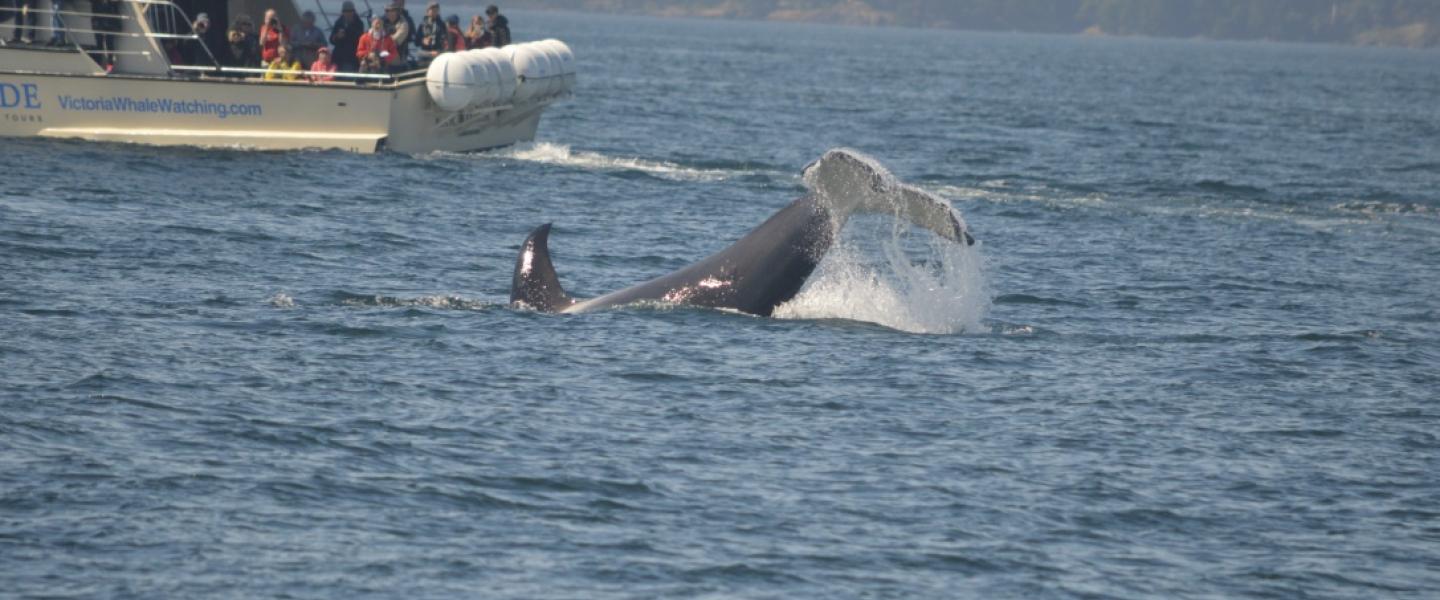 One of the best things about wildlife watching is that you never know what is going to happen. Every day is different and the day before doesn’t necessarily give you any indication of what the next day will be like. Yesterday there were orcas just outside of Friday Harbor, today we had to travel about 35 miles one way in order to catch a glimpse of these magnificent animals. It was an absolutely beautiful day, the sun was shining and the water was like glass. We headed the further West that I have ever been on a tour before, just West of Race Rocks near Victoria, British Columbia. We head reports of transient whales in that area and off we went! On our transit to that area we stopped to look at some harbor seals and Steller’s sea lions at Whale Rocks. It seemed as though it was playtime for the Steller’s and naptime for the harbor seals. Almost all of the Steller’s were in the water doing a lot of rolling and thrashing around, while all of the harbor seals were resting in the comfort of the bull kelp bed. We made the trek to the group of transient orcas who engaged in some traveling and serious tail slapping! We watched as the whole family surfaced together while traveling West, back out toward the open ocean. After getting our fill of the orcas we made our way back towards Friday Harbor but were surprised with a minke whale on the way! Sometime minke whales can be very illusive and this individual was one of those. We only saw him surface about twice before deciding to leave. We had a bit of an adventure today on our trip but it seemed like our guests appreciated going the extra mile to see the whales.