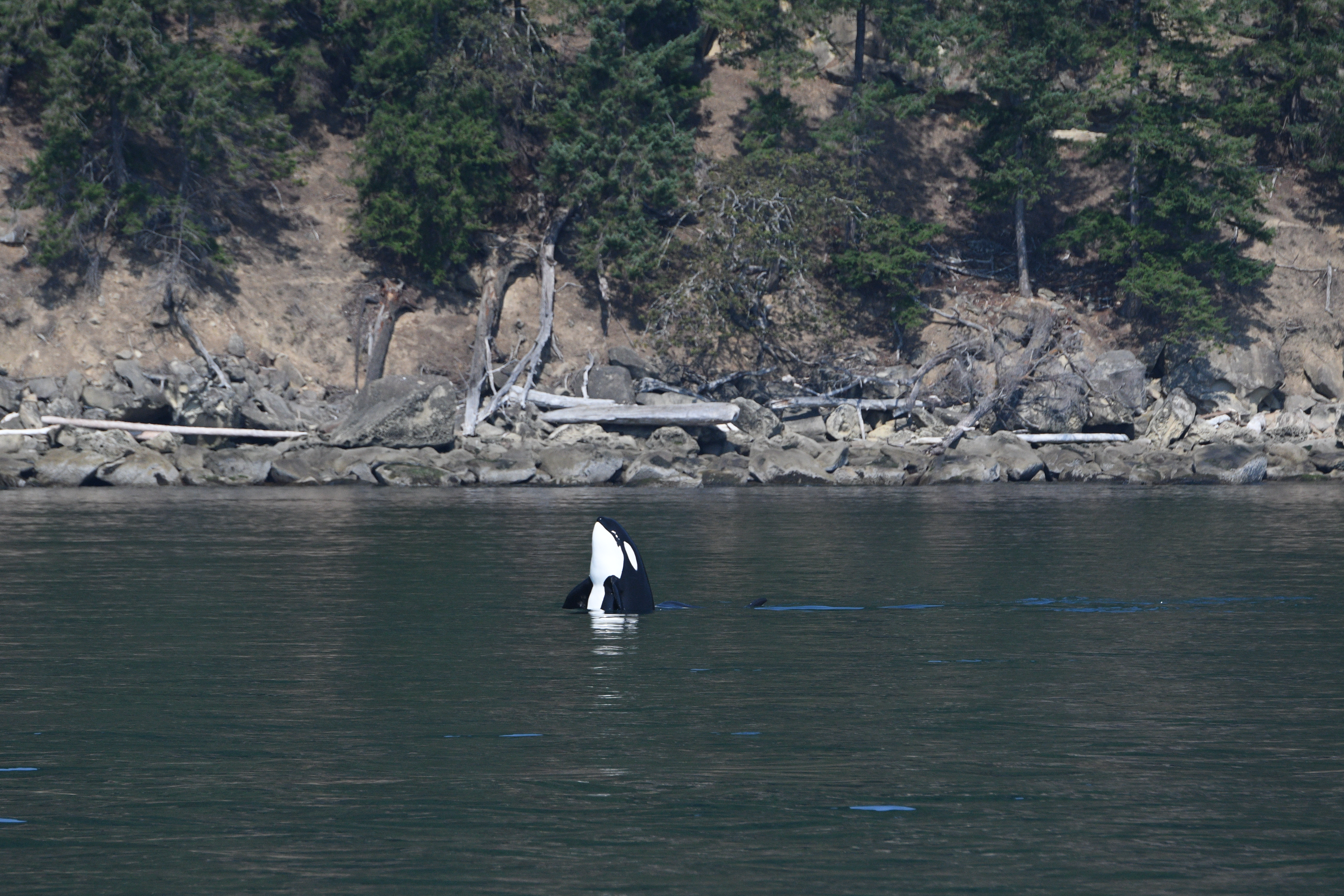 What an amazing outing out on the water! Today we headed northbound to follow reports of Killer Whales near Saturna Island. On the way we stopped by White Rocks and learned more about Transient Killer Whale prey by observing dozens of seals hauled out on the rocks. Many of these seals were small and young having just come out of this year’s pupping season. Seals in this area have gotten to carrying capacity meaning that they are at the highest population the ecosystem can sustain. This abundant populus allows our transient killer whales to thrive in this area.