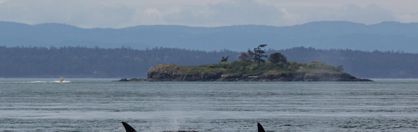 This morning when Captain Gabe and I arrived at the docks a ferry came into the marina here in Friday Harbor and reported seeing orcas just outside the town! While I got everyone fitted in exposure suits, he jumped on the boat and took it out to locate those orcas for us. Once he’d spotted them and we were ready to go, he brought Kestrel back and we all hopped on! We headed north into San Juan Channel to go check out this group of Bigg’s killer whales, which we identified as the T65As, a family of six mammal-eating orcas: