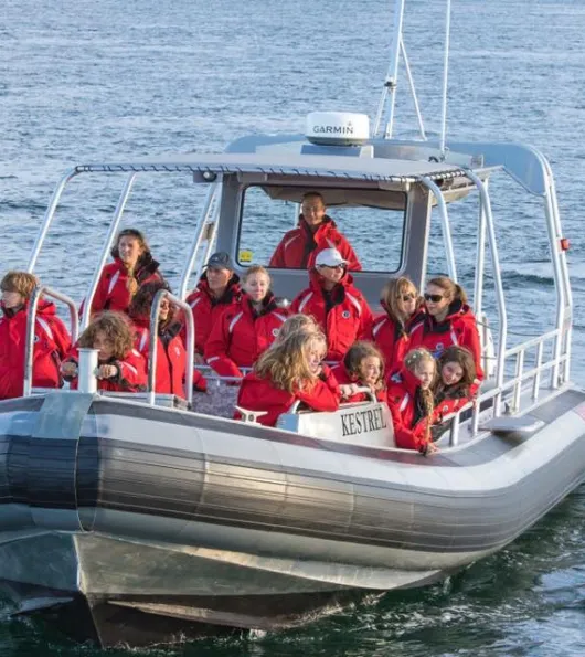 Ready for adventure? Kestrel is a rigid inflatable, open-air zodiac-style vessel. This boat is fast, safe, and perfect for ages 8+.